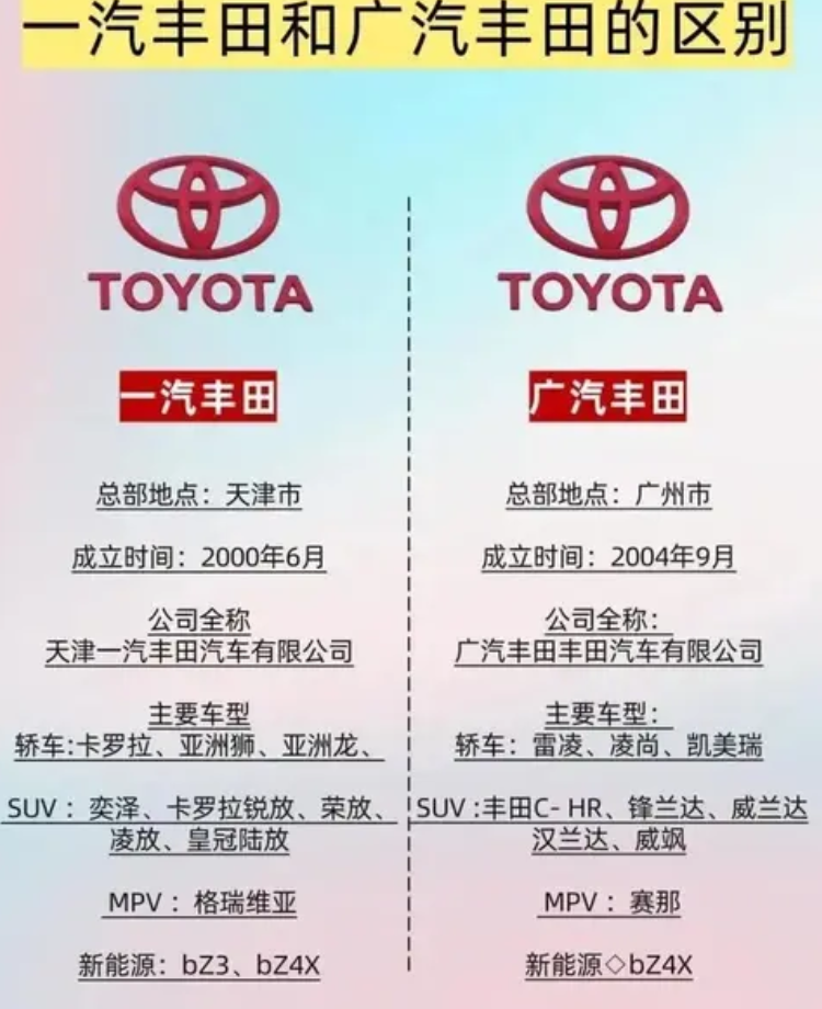 先看丰田的“渐进式整合”:拖了8年的南北壁垒终被打破。作为丰田在华“双合资”战略的产物,2000年成立的一汽丰田与2004年诞生的广汽丰田,曾长期在产品、渠道、供应链上各自为战——电子系统测试标准不统一,同款平台车型电子元件兼容率仅78%,供应链重复投入每年吞噬大量利润。最直观的痛点落在消费者身上:想买MPV,得在一汽丰田格瑞维亚和广汽丰田赛那之间跑两家店;选SUV,RAV4荣放(一汽)与威兰达(广汽)的对比试驾,成了“体力活”。