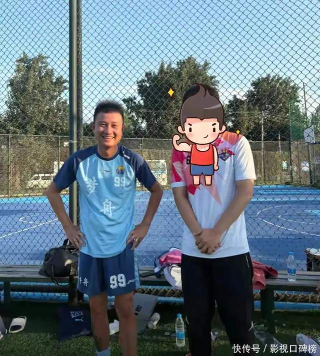 紧接着,8月14日有网友晒出在足球场偶遇文章,并一起合影。从照片中看,文章穿着一套蓝色运动服,双手叉腰站着,对着镜头笑容灿烂,眼角的细纹也清晰可见。网友打趣:这大叔气质,还挺有味道。